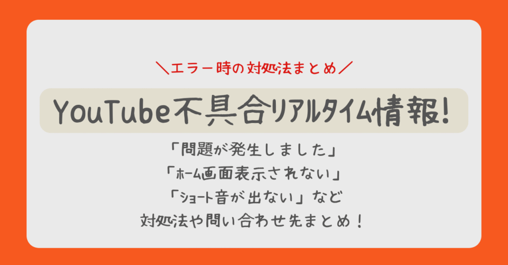 YouTube不具合リアルタイム情報!問題が発生しました,ホーム画面ショート音が出ないの対処法や問い合わせ先まとめ