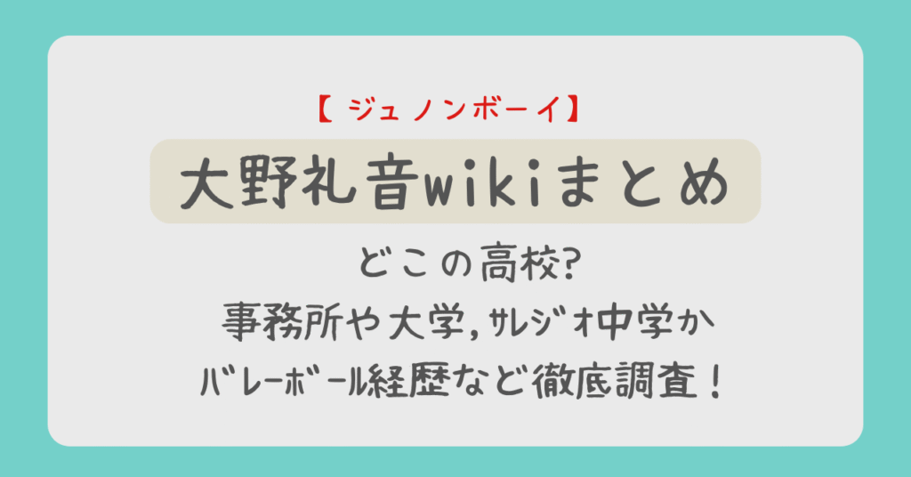 大野礼音どこの高校?事務所や大学,サレジオ中学かバレーボール経歴などwikiまとめ