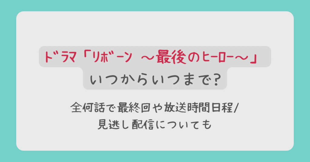 リボーンいつからいつまで?全何話で最終回や放送時間日程/見逃し配信についても
