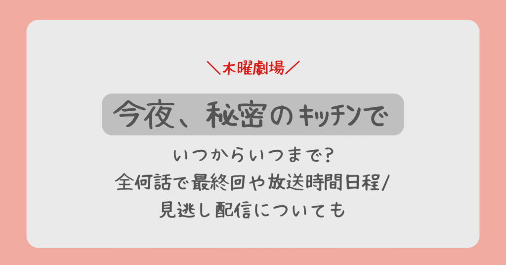 今夜秘密のキッチンでいつからいつまで?全何話で最終回や放送時間日程/見逃し配信についても
