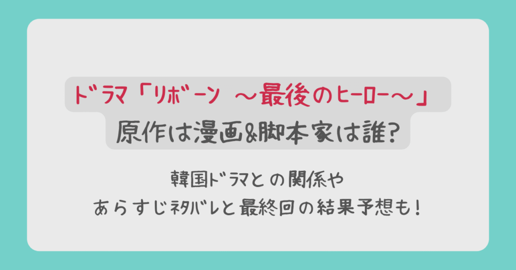 リボーン原作は漫画&脚本家は誰?韓国ドラマとの関係やあらすじネタバレと最終回の結果予想も!