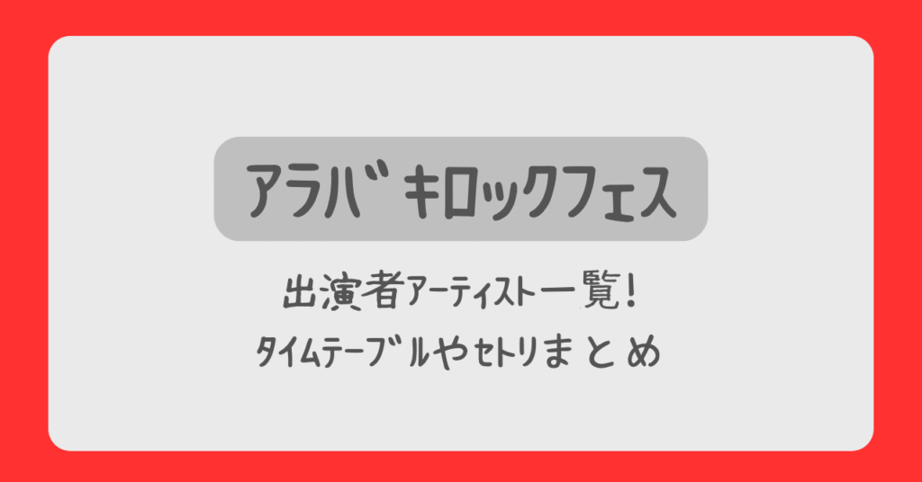 アラバキロックフェス2026出演者アーティスト一覧!タイムテーブルやセトリまとめ