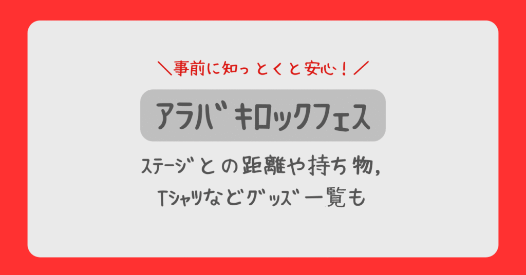 アラバキロックフェス2026ステージとの距離や持ち物,Tシャツなどグッズ一覧も