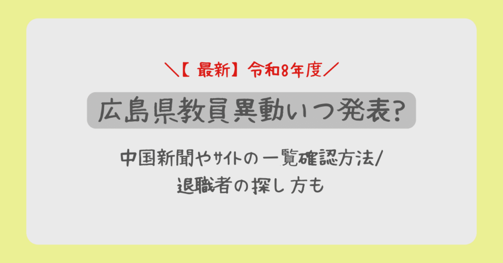 広島県教員異動2026いつ発表?中国新聞やサイトの一覧確認方法/退職者の探し方も