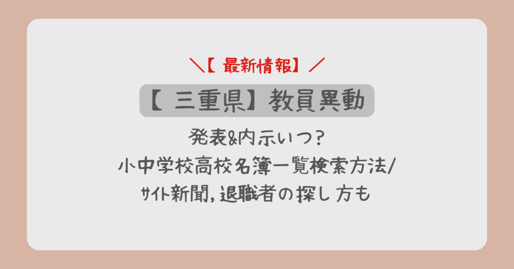 三重県教員異動2026発表&内示いつ?小中学校高校名簿一覧検索方法/サイト新聞,退職者の探し方も