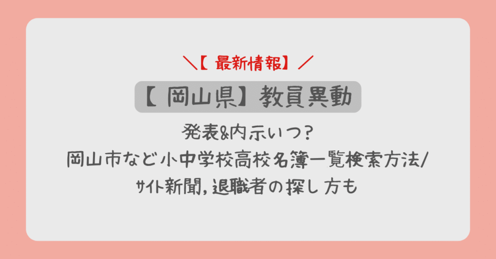 岡山県教員異動2026発表&内示いつ?岡山市など小中学校高校名簿一覧検索方法/サイト新聞,退職者の探し方も