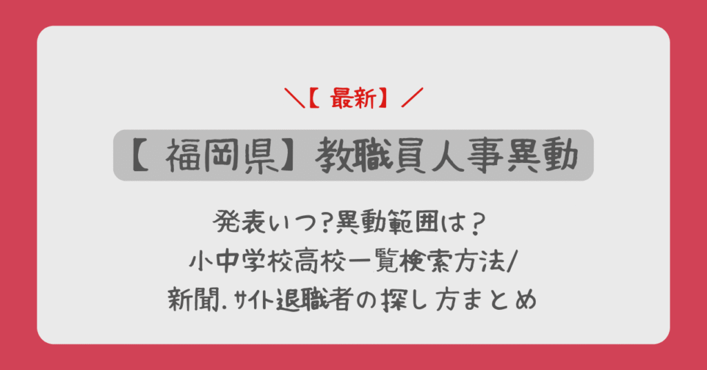 福岡県教員異動2026発表いつ?小中学校高校一覧検索方法/異動範囲や新聞.サイト退職者の探し方まとめ