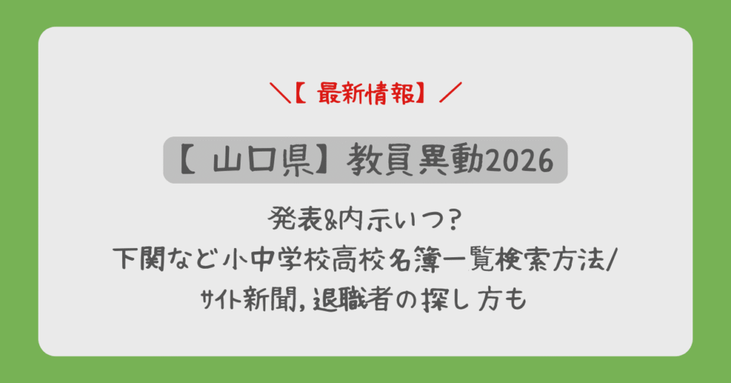 山口県教員異動2026発表&内示いつ?下関など小中学校高校名簿一覧検索方法/サイト新聞,退職者の探し方も