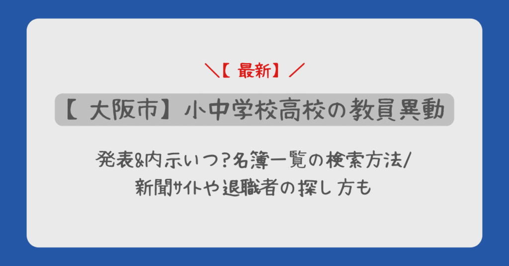 大阪市小中学校高校の教員異動2026発表&内示いつ?名簿一覧の検索方法/新聞サイトや退職者の探し方も