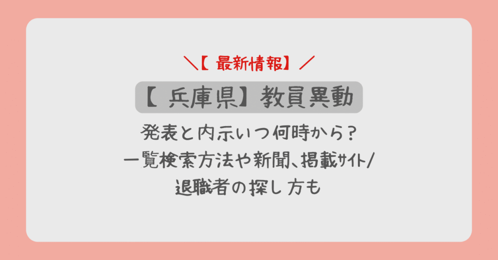 兵庫県教員異動2026発表と内示いつ何時から?一覧検索方法や新聞、掲載サイト/退職者の探し方も