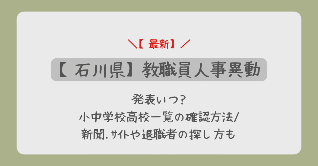 石川県教員異動2026発表いつ?小中学校高校一覧の確認方法/新聞.サイトや退職者の探し方も