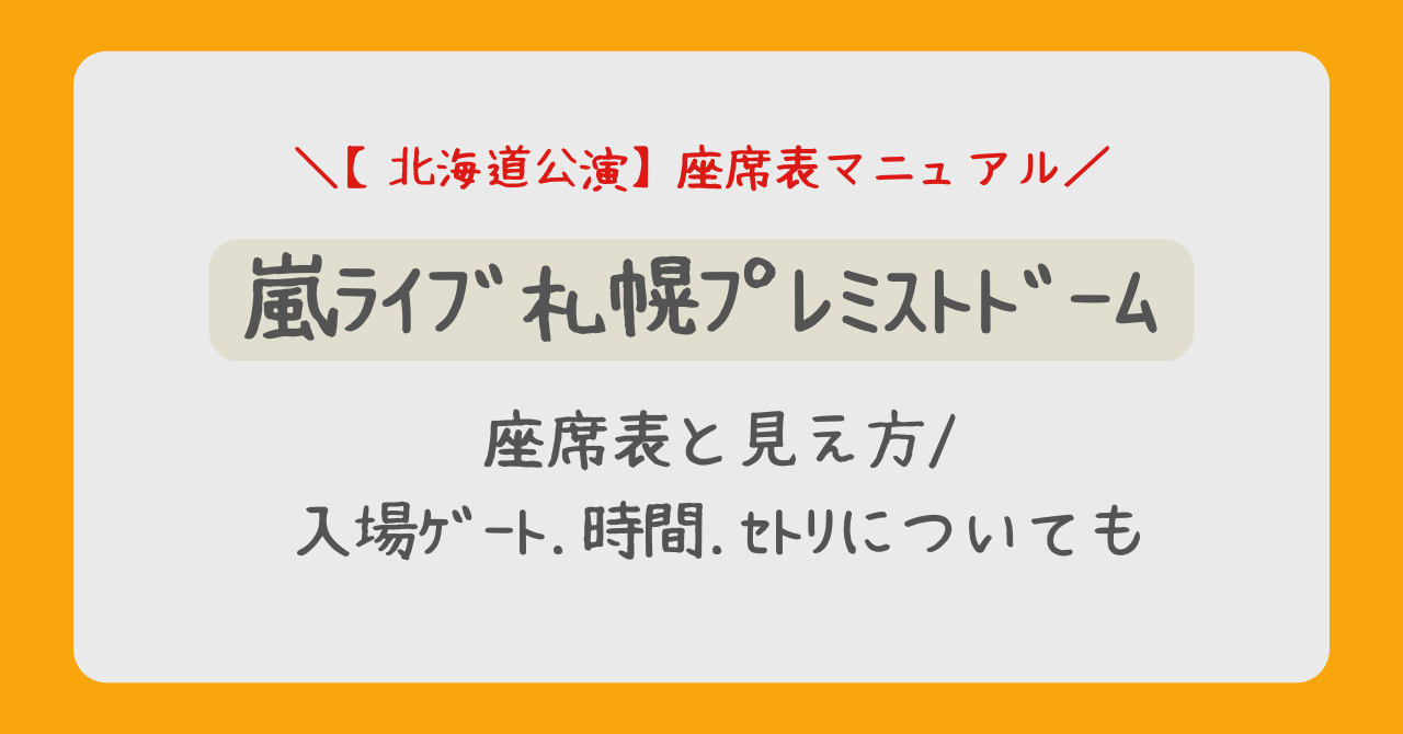 本記事では、2026年3月に開催される嵐の札幌公演に向けて、プレミストドームの最新座席表やステージからの見え方、入場ゲートの注意点、そして気になるセットリスト予想まで、参戦前に必ずチェックしておきたい情報を網羅して解説します。