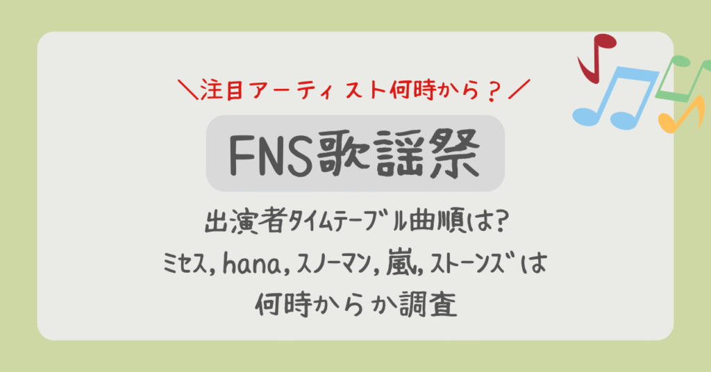FNS歌謡祭2025冬出演者タイムテーブル曲順は?ミセスhanaスノーマン嵐は何時からか調査