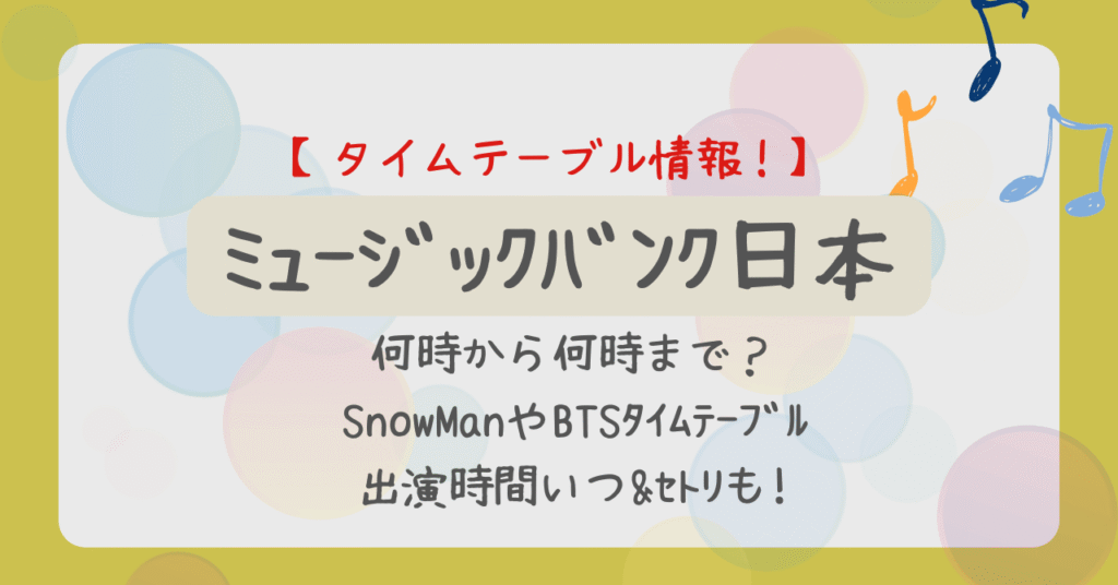 ミュージックバンク日本2025何時間?SnowManやBTSタイムテーブル出演時間いつ&セトリも!
