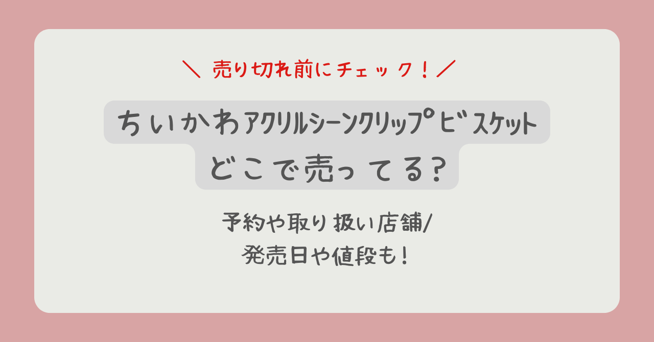 この記事では、「ちいかわアクリルシーンクリップビスケット」がどこで売ってるのか、予約情報や取り扱い店舗、発売日、値段について詳しくまとめました。