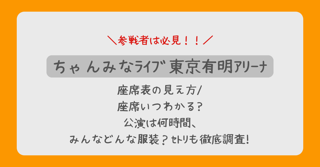 この記事では、先行して開催された福岡・大阪公演の最新情報を踏まえ、有明アリーナの座席表や見え方、チケット発券タイミング、服装、セトリ予想まで、参戦前に知っておきたい情報を徹底解説します!