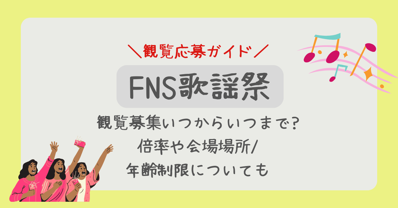 この記事では、過去のデータや傾向、そして具体的な2025年の放送日を基に、FNS歌謡祭2025冬の観覧募集に関する情報をどこよりも詳しく、そしてわかりやすく解説します。具体的な募集期間の予想から、知っておきたい倍率の目安、そして会場の場所、さらには意外と重要な年齢制限まで、観覧応募を成功させるために必要な情報を全て網羅しています。