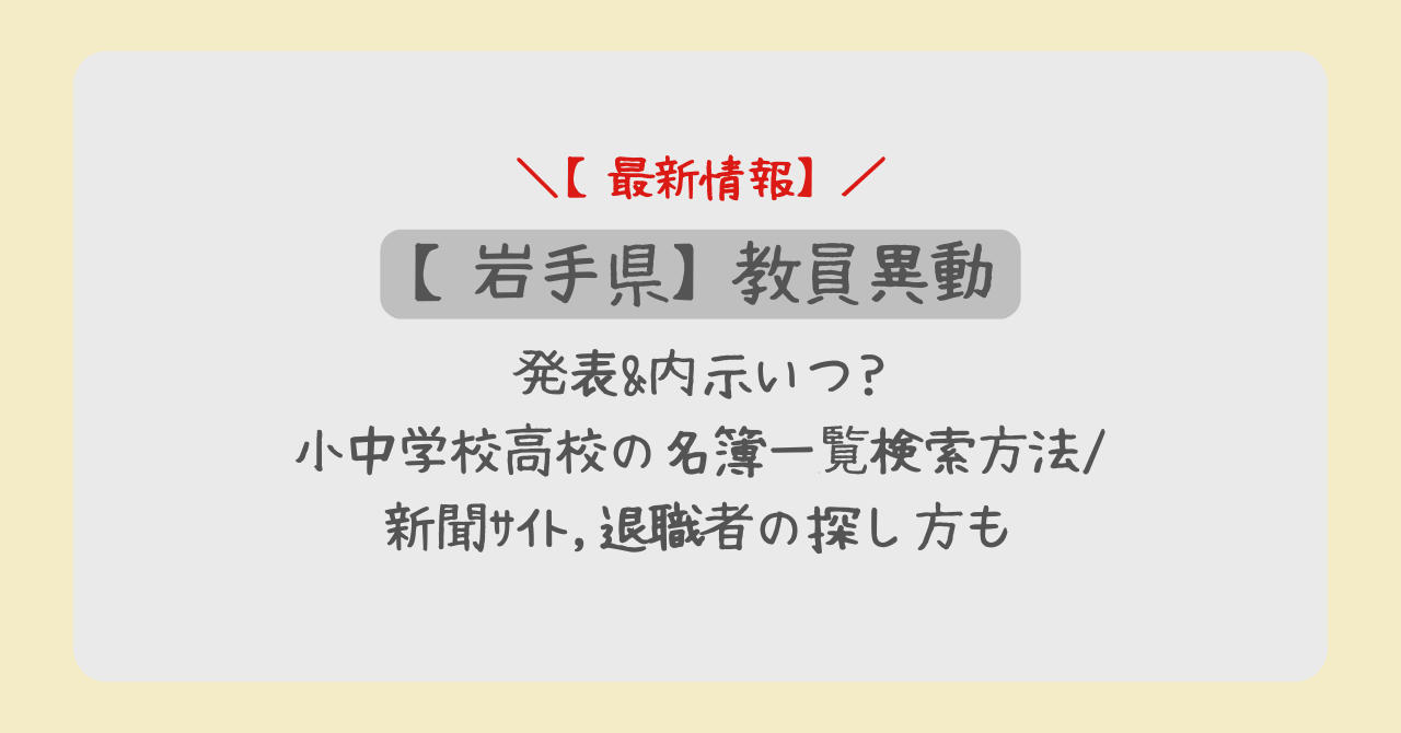 この記事では、2026年(令和8年度)の岩手県教員異動について、最新の発表スケジュール、内示のタイミング、岩手日報での掲載日、公式サイトでの検索手順、そして退職者の探し方まで、どこよりも詳しくまとめました。