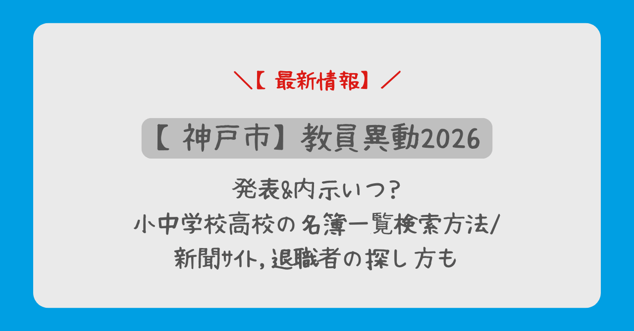 この記事では、2026年(令和8年度)の神戸市教員異動について、正式な発表日、内示のタイミング、神戸新聞での掲載スケジュール、公式サイトでの一覧確認手順、そして退職者の探し方まで徹底的に解説します。