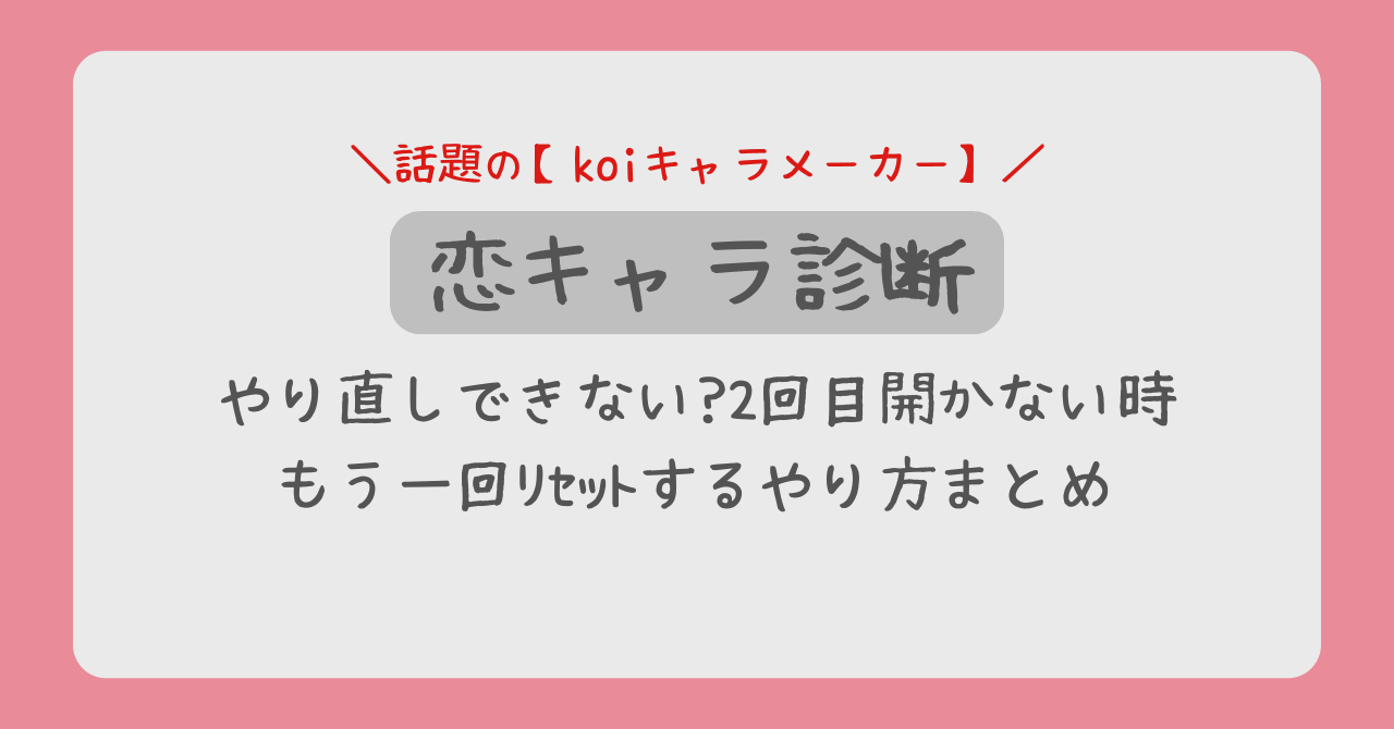 本記事では、koiキャラメーカーで診断をやり直したい場合に役立つ仕組みと、2回目以降もスムーズに診断するためのリセット方法を、SEOの観点も踏まえて徹底的に解説します。