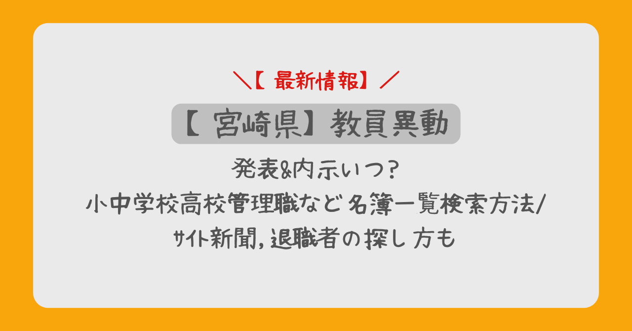 宮崎県教員異動2026発表&内示いつ?小中学校高校管理職など名簿一覧検索方法/サイト新聞,退職者の探し方も
