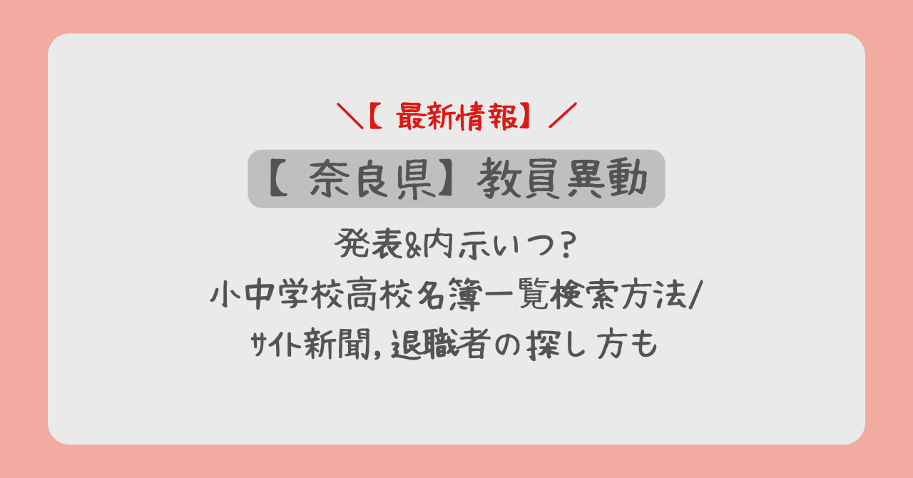 この記事では、2026年(令和8年度)の奈良県・奈良市の教職員人事異動について、正式な発表タイミング、内示の時期、奈良新聞での掲載スケジュール、そして「4月1日」に名簿を確認する具体的な方法まで詳しく解説します。