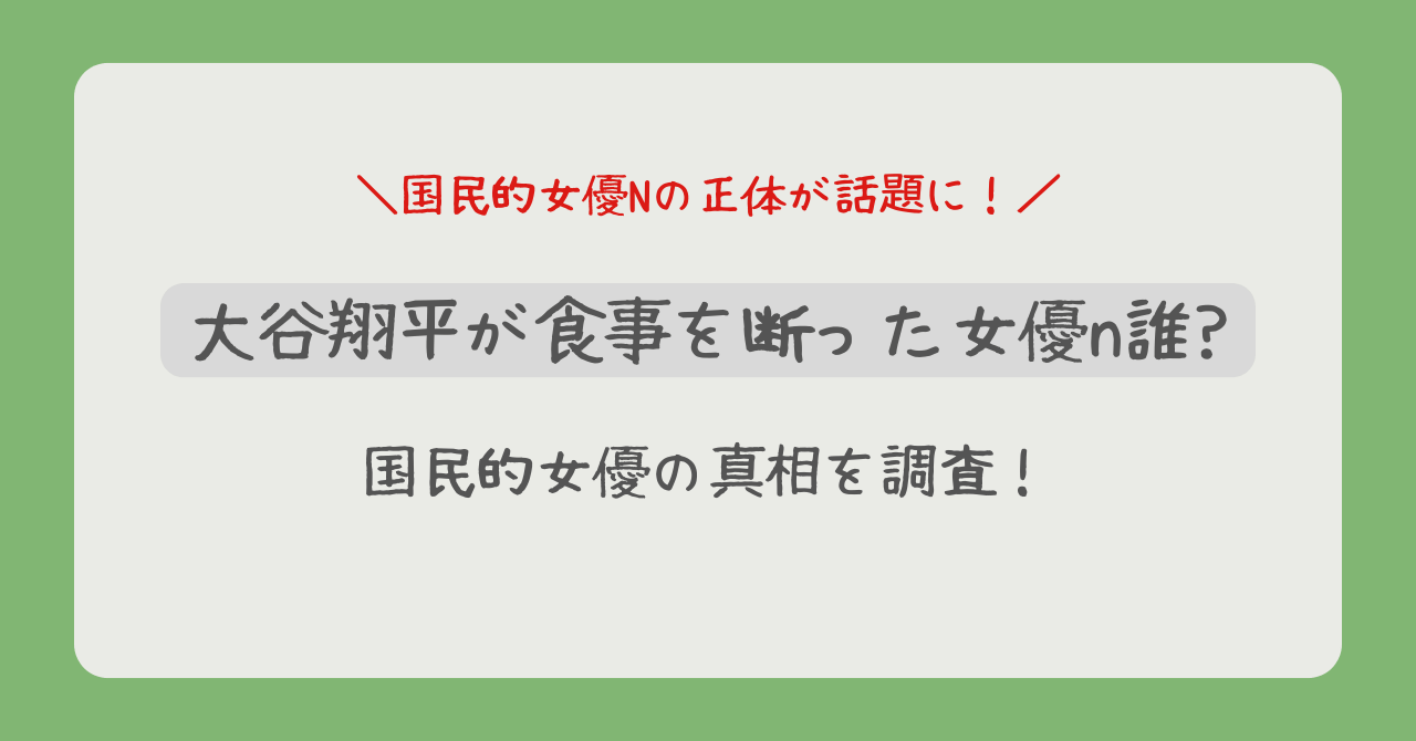 最近のネットニュースやSNSで話題になっている「大谷翔平が食事を断った女優Nとは誰?」という噂。メジャーリーグで大活躍し、今や世界的スーパースターとなった大谷翔平選手にまつわる人間関係の話題は、多くのファンの関心を集めています。しかし、その“国民的女優N”とは一体誰なのでしょうか?この記事では、真相に迫りながら、噂の背景や可能性のある人物像について詳しく掘り下げていきます。