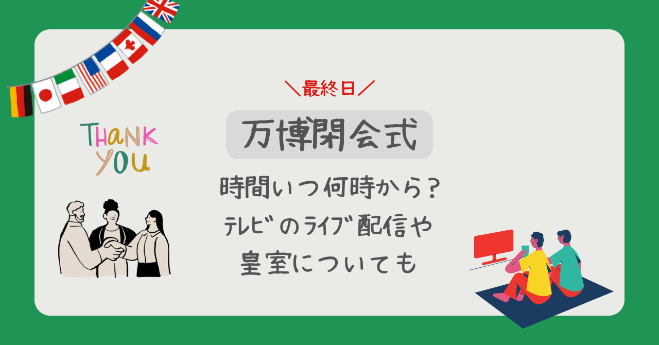- 万博閉会式は2025年10月13日(月・祝)14:00〜15:10に開催