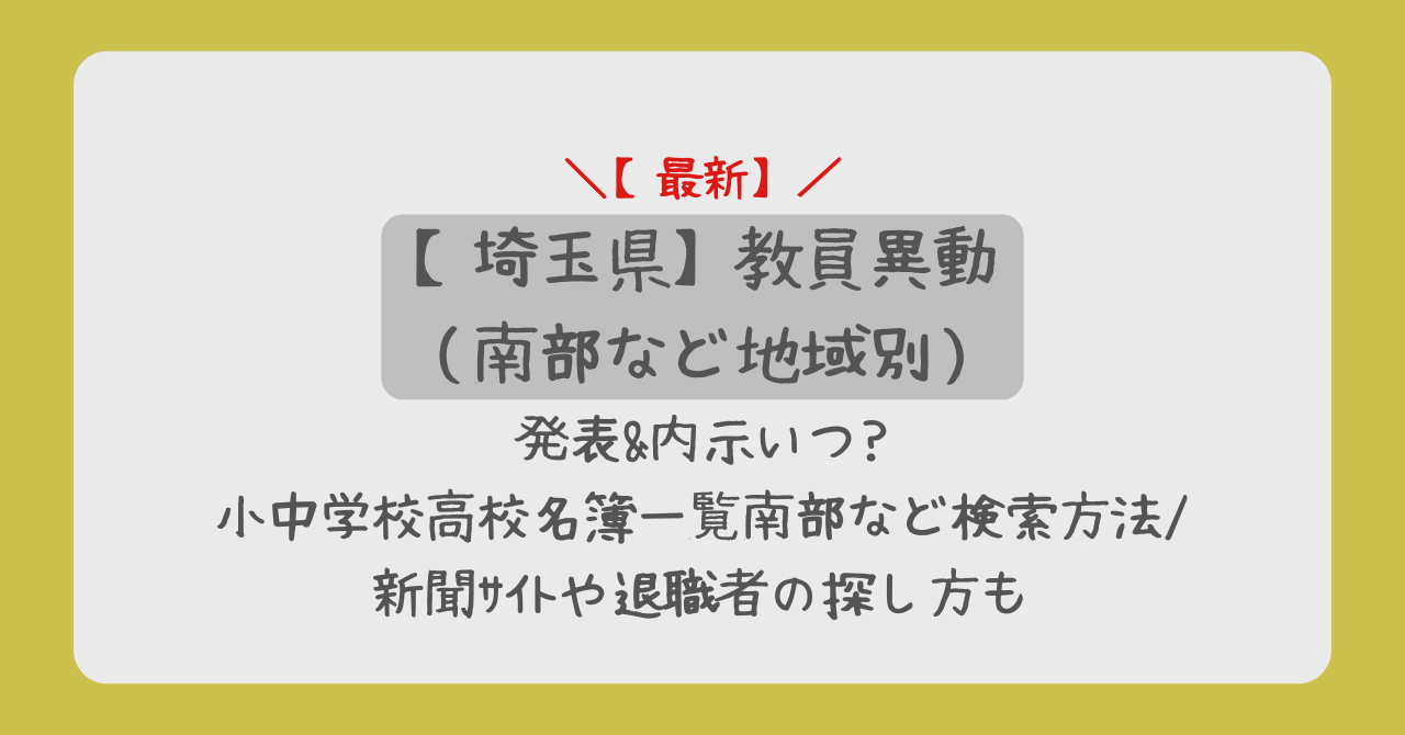 埼玉県教員異動2026発表&内示いつ?小中学校高校名簿一覧南部など検索方法/新聞サイトや退職者の探し方も