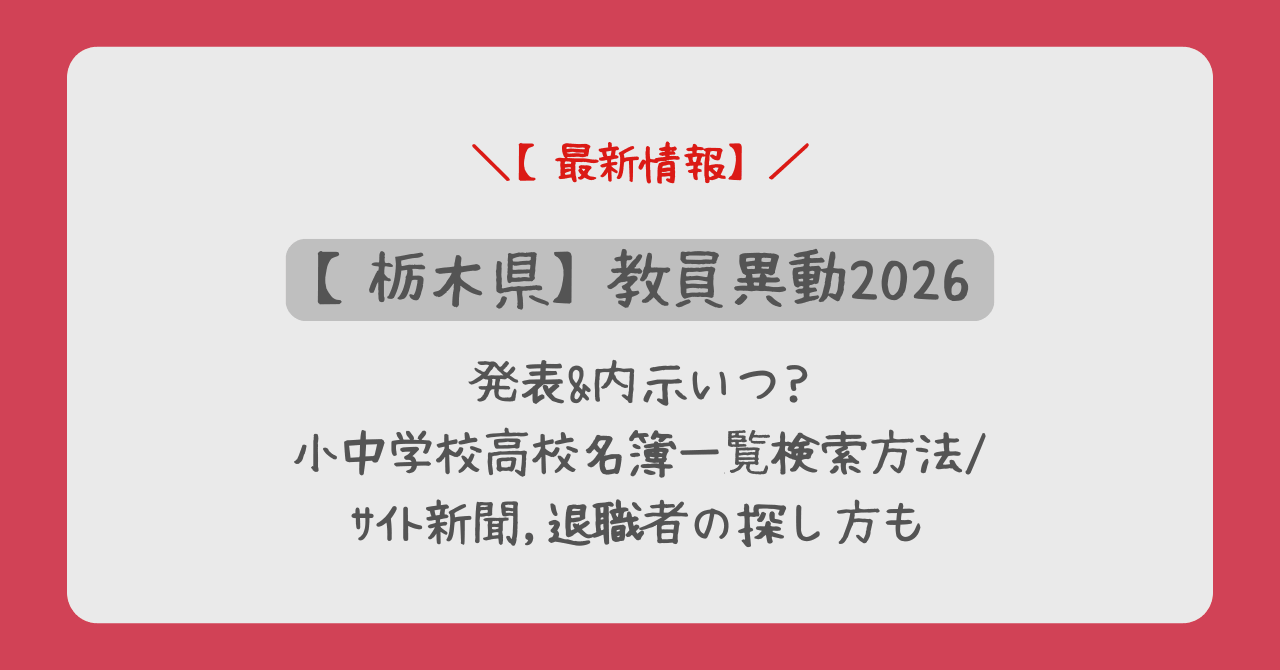 この記事では、2026年(令和8年度)の栃木県教員異動について、最新の発表日・内示スケジュール、下野新聞での掲載日、公式サイトでの一覧確認方法、そして退職者の探し方まで、徹底的にまとめました。