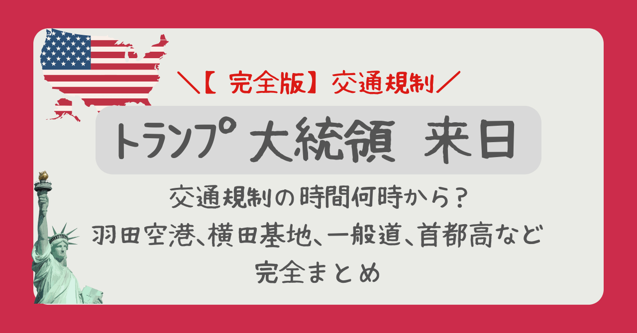 本記事では、警視庁および関係機関の最新発表に基づき、トランプ大統領の具体的な来日時刻の予測、そして羽田空港・横田基地周辺から首都高速、一般道に至るまでの、影響の大きい交通規制時間とエリアを徹底的に解説します。具体的な移動ルートの変更や、規制を回避するための実践的なアドバイスも網羅。週末の間にこの記事を読んで、来る週の準備を万全に整えてください。