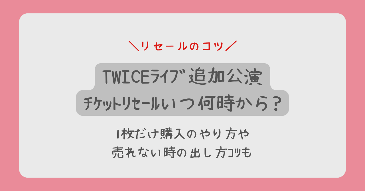 この記事では、TWICE追加公演2026のリセール開始日予想、狙い目の「1枚購入」のやり方、そしてどうしてもチケットを売りたい時の「売れ残らない出し方のコツ」を徹底解説します。