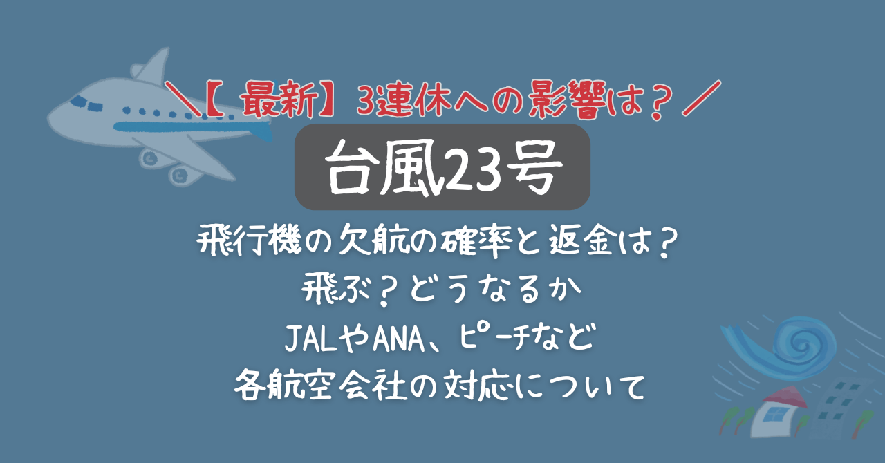 10月の三連休直撃の可能性もあるタイミングで当然発生した台風23号ナクリー。「フライトに影響する?」「本当に飛ぶの?」「欠航だったら返金はどうなる?」