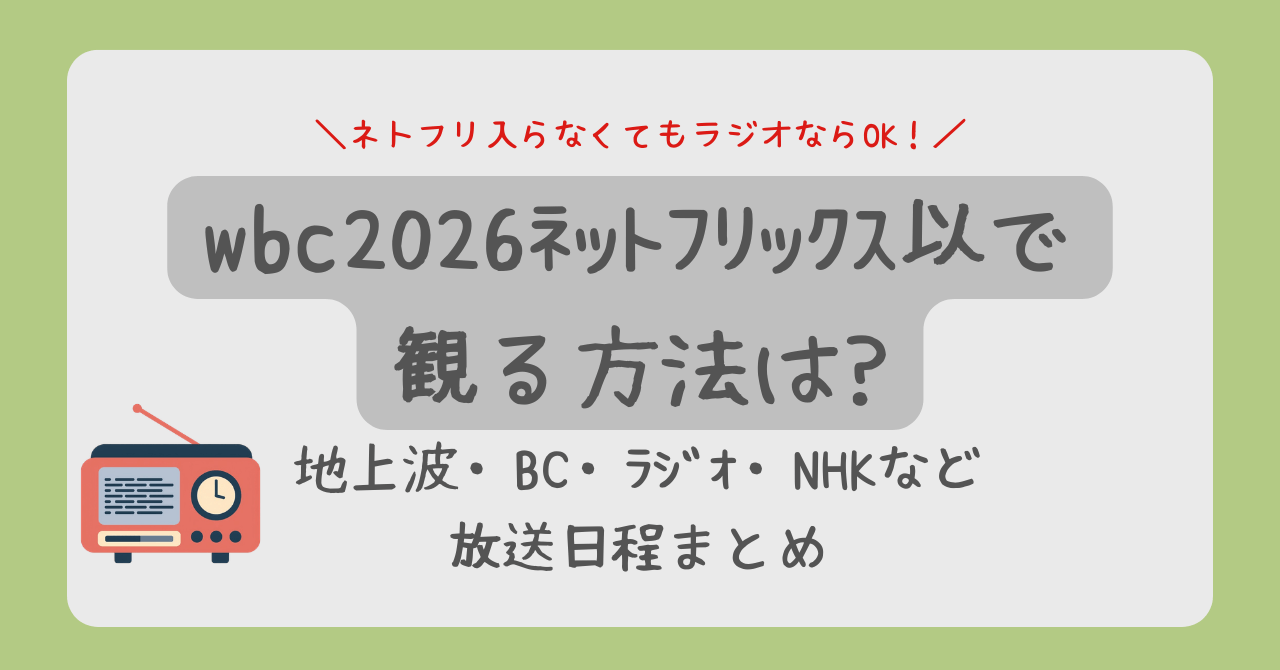 今大会は、前回までと異なりNetflix(ネットフリックス)が日本国内の全試合独占配信権を持っています。この記事では、Netflix以外で試合を追う方法はあるのか、地上波放送がなくなった理由、そして無料で楽しめるラジオ中継の日程まで、最新情報を詳しくまとめました。